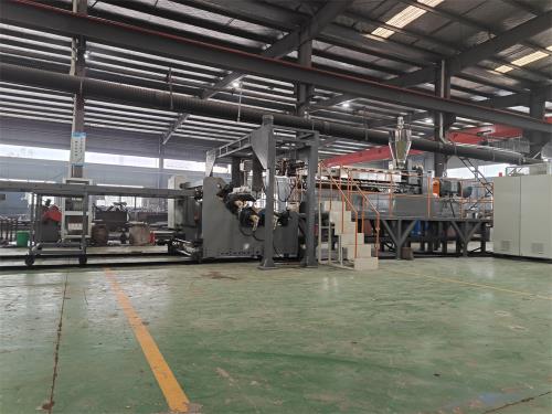 第一節(jié)筒體為進料筒體,第六為自然排氣;第十節(jié)筒體為抽真空;其余筒體為閉口筒體,筒體采用軟水冷卻;2)加熱區(qū)段:進料區(qū)不加熱,雙螺桿片材生產(chǎn)線其他采用優(yōu)質(zhì)鑄鋁加熱器。6、水冷卻系統(tǒng)1)水泵泵電機功率:3kw;自動控水電磁閥;手動閥用銅閘閥控制;加大水流量,2)采用環(huán)保風冷卻系統(tǒng)(環(huán)保型:發(fā)明專利號:CN201911312134.6)不需要接外循環(huán)水冷卻,不用徘外水;采用閉環(huán)循環(huán)系統(tǒng)7水循環(huán)真空泵,電機功率:7.5KW,真空泵采用環(huán)保冷卻系統(tǒng)(環(huán)保型:發(fā)明專利號:CN201911312115.3)不需要接外循環(huán)水冷卻,不用徘外水;采用閉環(huán)循環(huán)系統(tǒng),8、液壓板式換網(wǎng):1)換網(wǎng)器,板式過濾自動換網(wǎng)器,流量截面為圓形;2)液壓缸、液壓站等一套,采用YA-N46抗磨46#液壓油;(油品需客戶自行采購)9.計量泵1)規(guī)格: JDL-200cc驅(qū)動功率11Kw電機,變頻控制三晶變頻器,電機轉(zhuǎn)數(shù)1500轉(zhuǎn)/分2)計量泵最高轉(zhuǎn)數(shù),60轉(zhuǎn)/分,計量泵與減速箱連接 采用萬向聯(lián)軸器,泵的入口及出口 各配一個壓力傳感器,(三)片材模具:產(chǎn)品要求:厚度0.8-1.5mm,公差±0.1;制品寬度:800mm 1) 出料有效寬度1200mm;制品寬度1000mm;制品厚度0.8-1.5mm,模頭材料:P20鋼材, 模頭流面鍍硬鉻處理。模具兩邊150mm堵頭(四)三輥壓光機JDL-1000 《一套》L型1、機架:采用型鋼焊接而成,有較高的鋼性。整個機架由兩件墻板、頂聯(lián)接板及底座組成,各安裝面均經(jīng)過機械加工,以確保安裝精度。2、雙螺桿片材生產(chǎn)線減速箱、電動機:本機采用輥筒獨立傳動,每個輥筒軸端均配有一傳動減速箱,傳動 平穩(wěn)、噪音低、效率高,結(jié)構(gòu)緊湊。電動機采用伺服電機,功率:3 kw×3臺;三輥線速度為0-10米分鐘3、輥筒組件1) 輥筒直徑:上輥φ400mm /中輥φ400mm/下輥φ400mm,輥面寬度1000mm2)